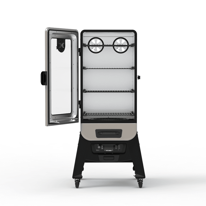 black box. The 1650-watt Smoker features a large front window, 4,424